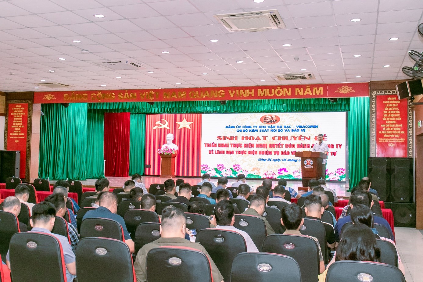 Ngày 06/06/2024, Chi bộ kiểm soát nội bộ và bảo vệ (KB) tổ chức sinh hoạt chuyên đề “Triển khai thực hiện Nghị quyết của Đảng uỷ Công ty về công tác lãnh đạo, chỉ đạo thực hiện nhiệm vụ bảo vệ an ninh trật tự (ANTT)”.