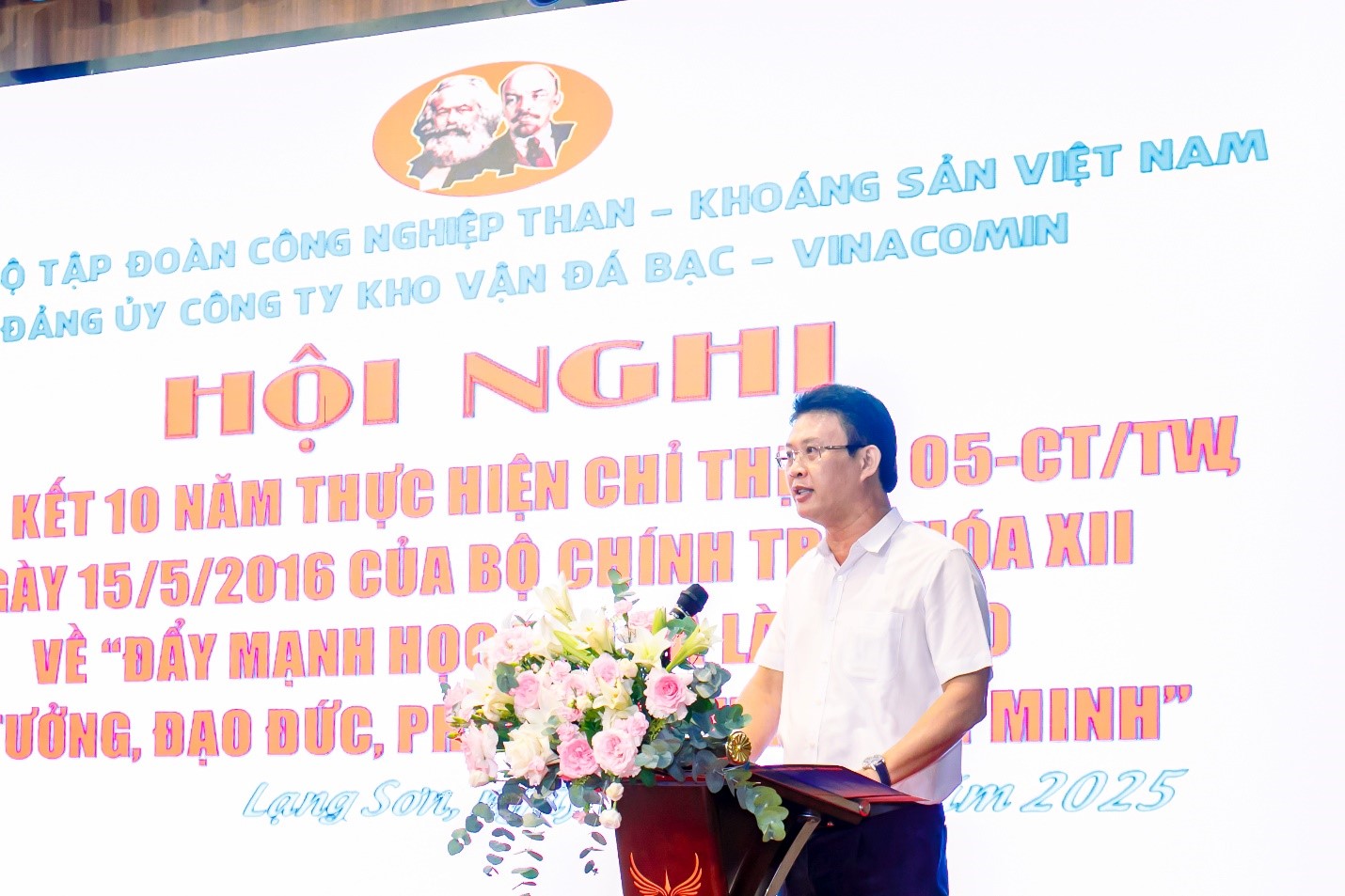 Ngày 30/5/2025, Đảng ủy Công ty kho vận Đá Bạc – Vinacomin tổ chức Hội nghị tổng kết 10 năm thực hiện Chỉ thị 05-CT/TW, ngày 15/5/2016 của Bộ Chính trị về học tập và làm theo tư tưởng đạo đức phong cách Hồ Chí Minh.