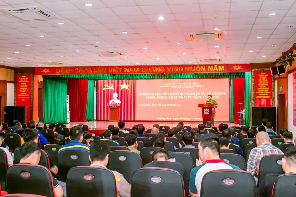Tại lớp huấn luyện, các học viên đã được nghe giảng viên Phòng cảnh sát PCCC – CNCH Công an tỉnh Quảng Ninh thông tin các vụ cháy lớn và đánh giá tình hình cháy nổ trong thời gian gần đây. Đồng thời trao đổi các kiến thức pháp luật, kiến thức về phòng cháy và chữa cháy; Một số biện pháp PCCC tại chỗ; Phương pháp kiểm tra bảo quản, sử dụng các phương tiện phòng cháy và chữa cháy. Sau buổi học lý thuyết, các học viên đã được thực hành các thao tác, cách thức sử dụng các phương tiện bình bột, bình CO2 để dập tắt đám cháy và cách thức xử lý nhanh các tình huống có thể xảy ra.