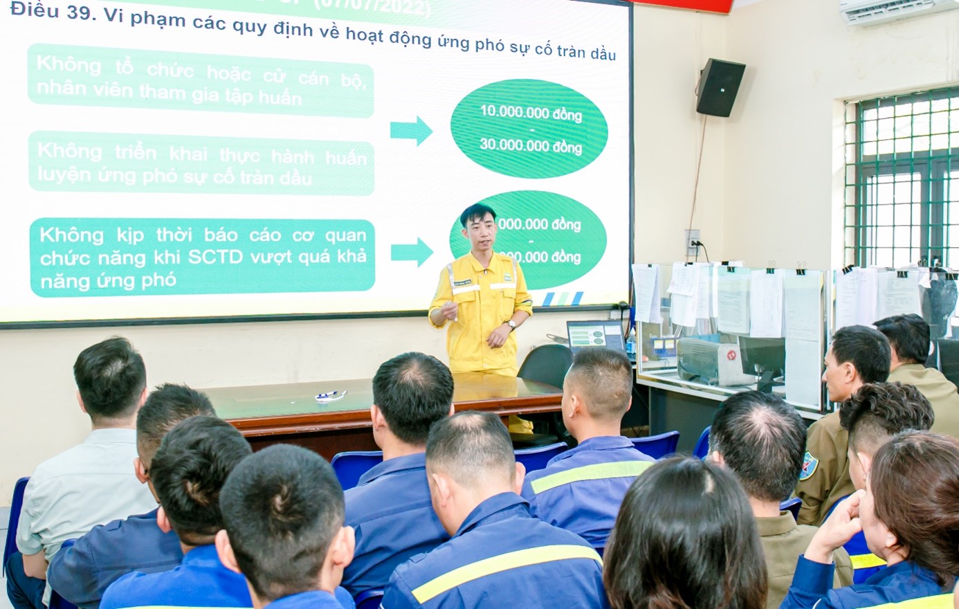 Tại buổi tập huấn, các học viên được cung cấp nhiều kiến thức trong công tác ứng phó, xử lý sự cố tràn dầu, cách xây dựng phương án phòng ngừa sự cố, những nguy cơ tiềm ẩn trong ứng phó sự cố, các bước xử lý sự cố tràn dầu.