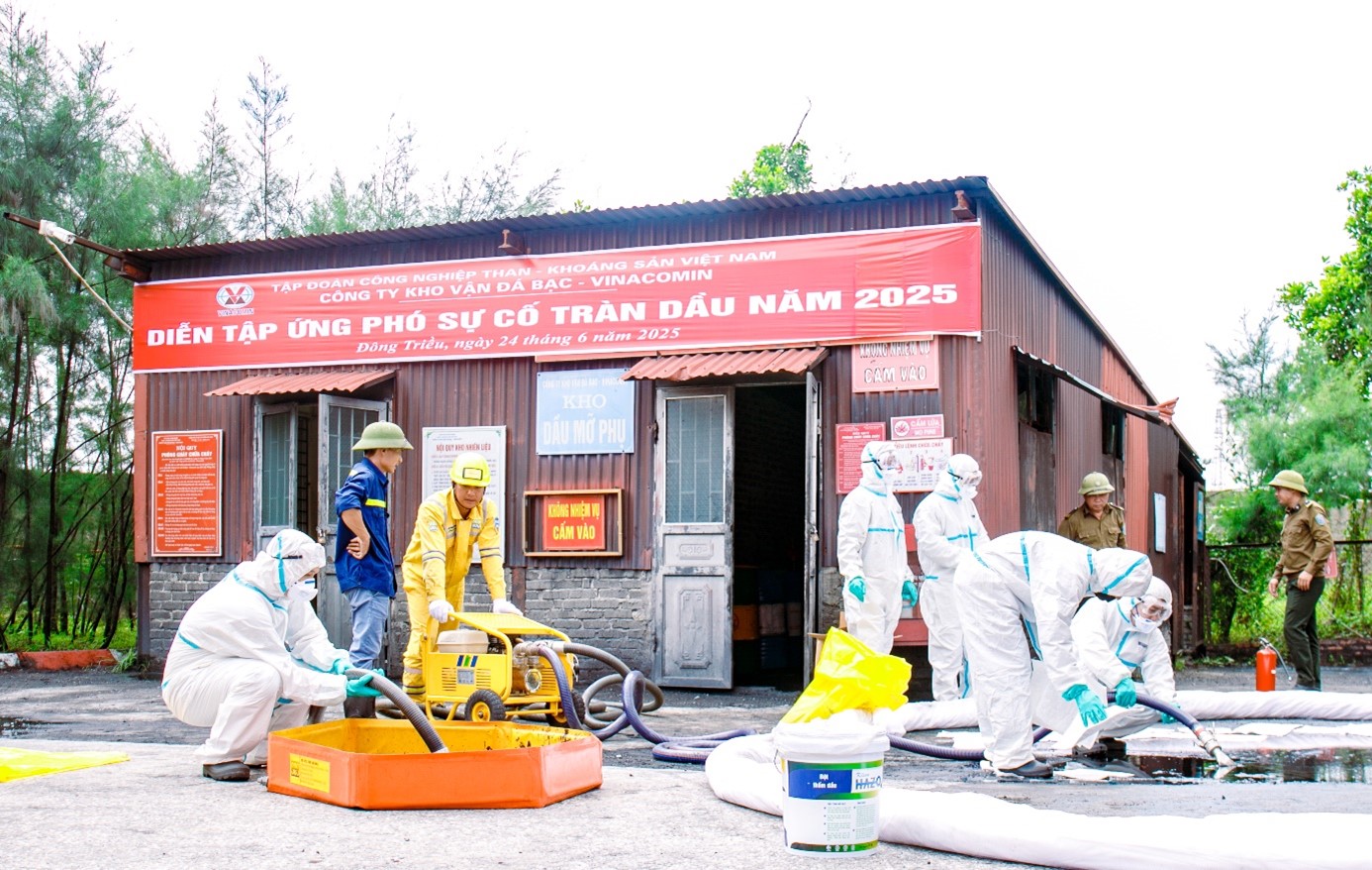Ngày 24/6, Công ty kho vận Đá Bạc – Vinacomin phối hợp với Công ty cổ phần SOS môi trường tổ chức tập huấn và diễn tập ứng phó sự cố tràn dầu.
