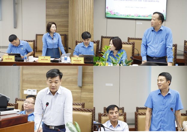 Các đại biểu tham dự hội nghị cơ bản thống nhất nội dung dự thảo báo cáo, đồng thời đóng góp ý kiến về thời gian tổ chức đại hội tại các cấp công đoàn cơ sở, sử dụng nguồn tích lũy tài chính, hướng dẫn nhấn mạnh yêu cầu đổi mới phương thức hoạt động công đoàn trong bối cảnh chuyển đổi số; tăng cường vai trò đại diện, bảo vệ người lao động;…