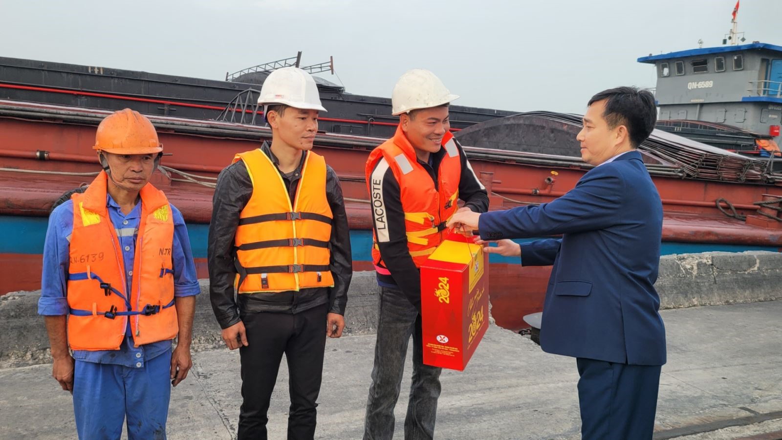Đ/c Vũ Hồng Mạnh, Phó Giám đốc Công ty Kho vận Đá Bạc tặng quà cho Thuyền trưởng các tàu trong ngày làm việc đầu năm mới Xuân Giáp Thìn 2024
