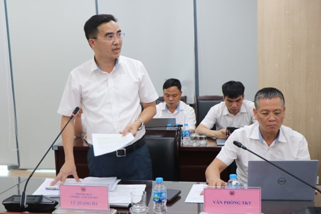 Trưởng Ban CV Lê Quang Hà báo cáo đánh giá công tác Cơ điện – Vận tải, Cơ khí 6 tháng đầu năm, triển khai nhiệm vụ 6 tháng cuối năm 2025