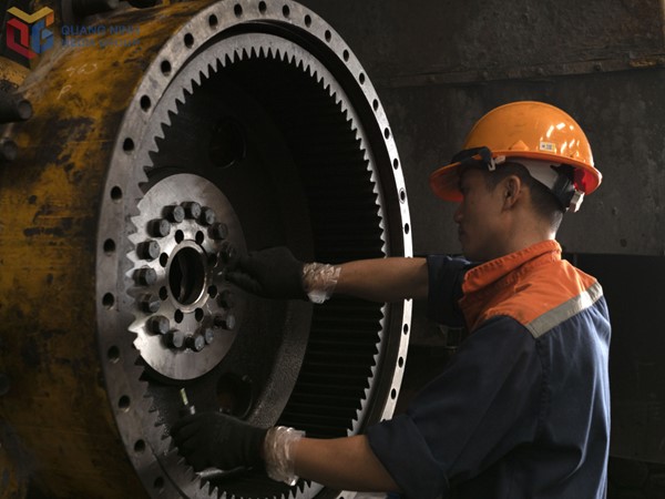 Công nhân Công ty CP Than Cao Sơn kiểm tra, bảo dưỡng thiết bị cơ giới hóa phục vụ sản xuất.